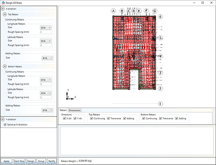 امکان تعریف میلگردهای سراسری برای نوارهای طراحی جهت x و y بصورت مجزا