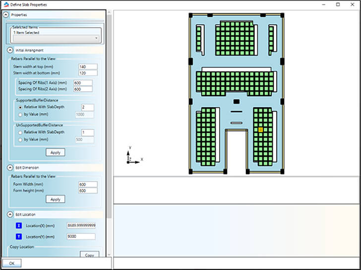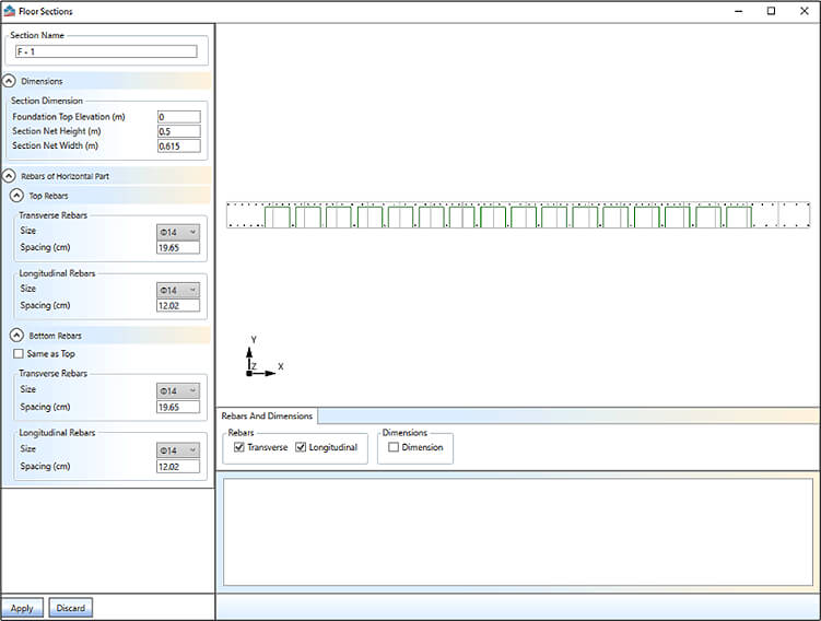 امکان ویرایش اطلاعات مثل قطر میلگردهای عرضی و ابعاد نوار در نقشه برش سقف